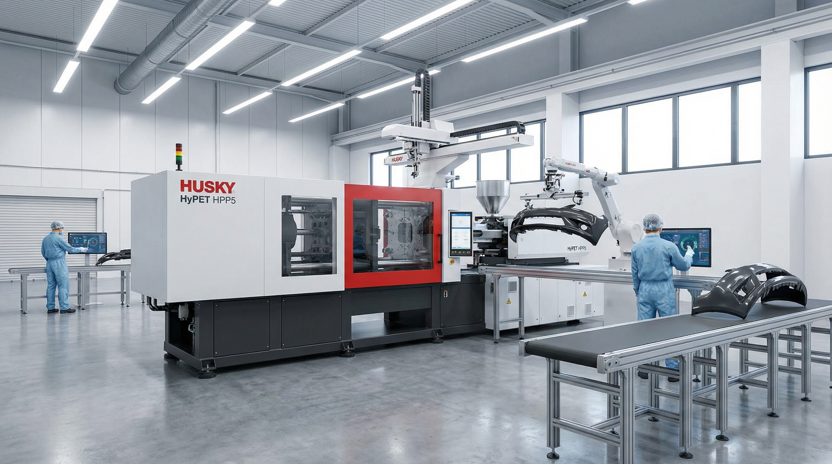 How does the machine finish automotive injection molding?