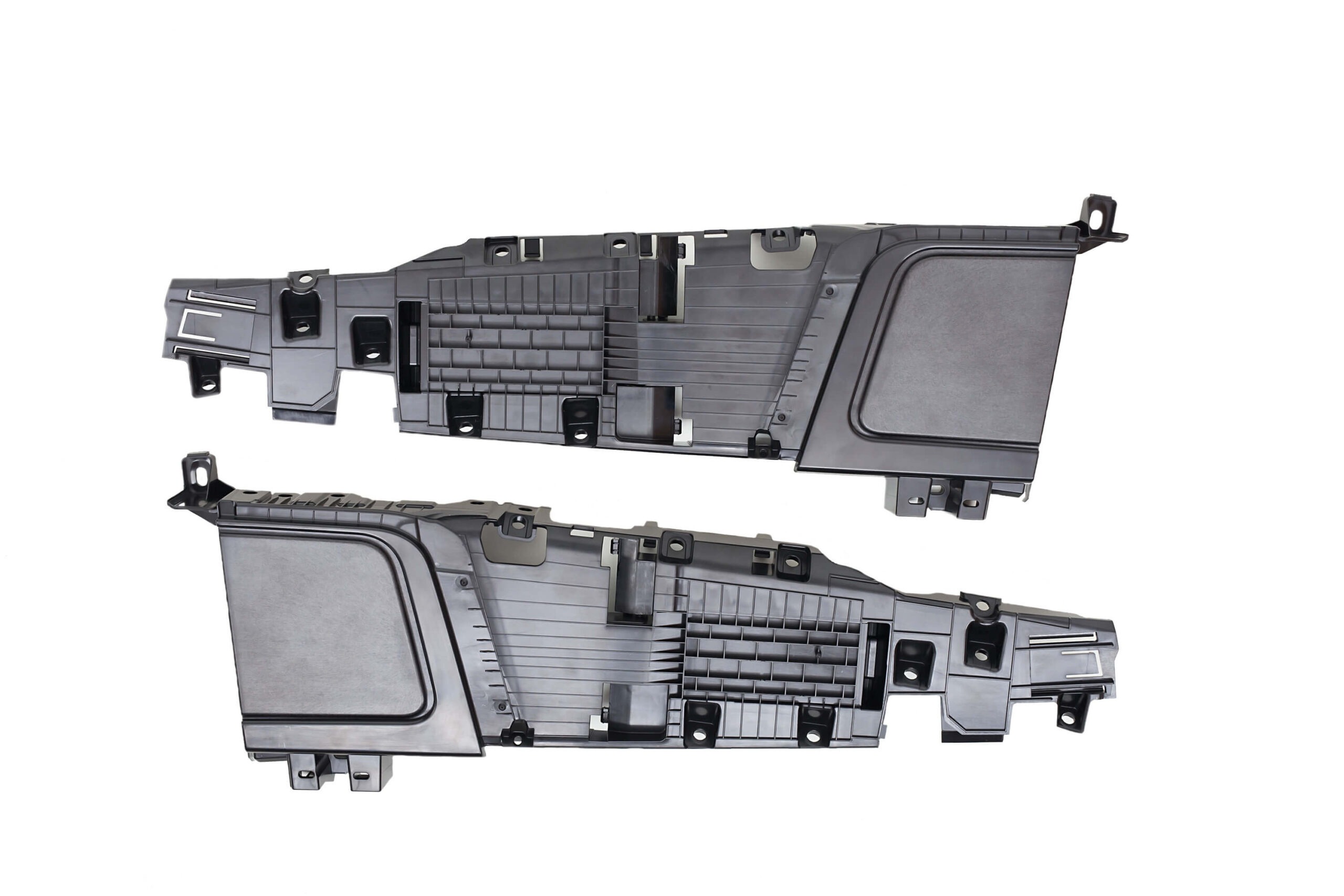 Implemented balanced runner system with individual cavity temperature control. Moldflow simulation optimized gate design to eliminate weld lines in critical mounting areas. EDM mirror finish on parting surfaces eliminated flash completely.